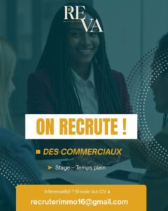 REVA Immobilier, entreprise sénégalaise spécialisée dans la vente et la gestion de biens immobiliers, recrute des commerciaux dans le cadre du renforcement de son équipe.